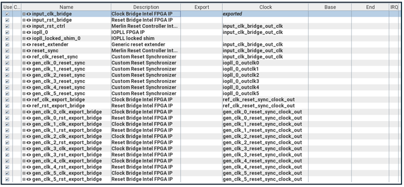 | Ref | 100MHz | Board Input Reference (and DP Nios® V CPU interface) Clock |