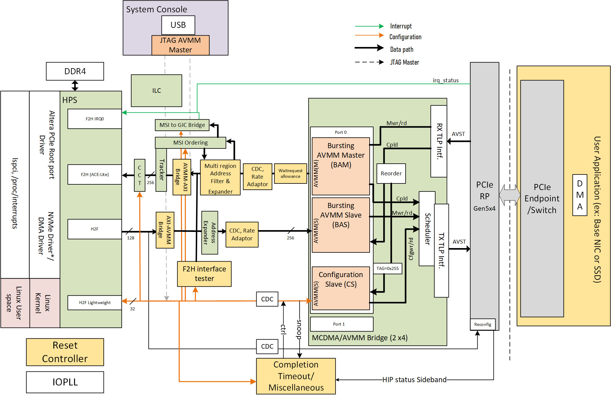- F2H AXI4 (burst enabled)/ACELite interface for data transfers from PCIe EP.