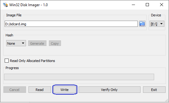 # Use dd to write the image in the corresponding device