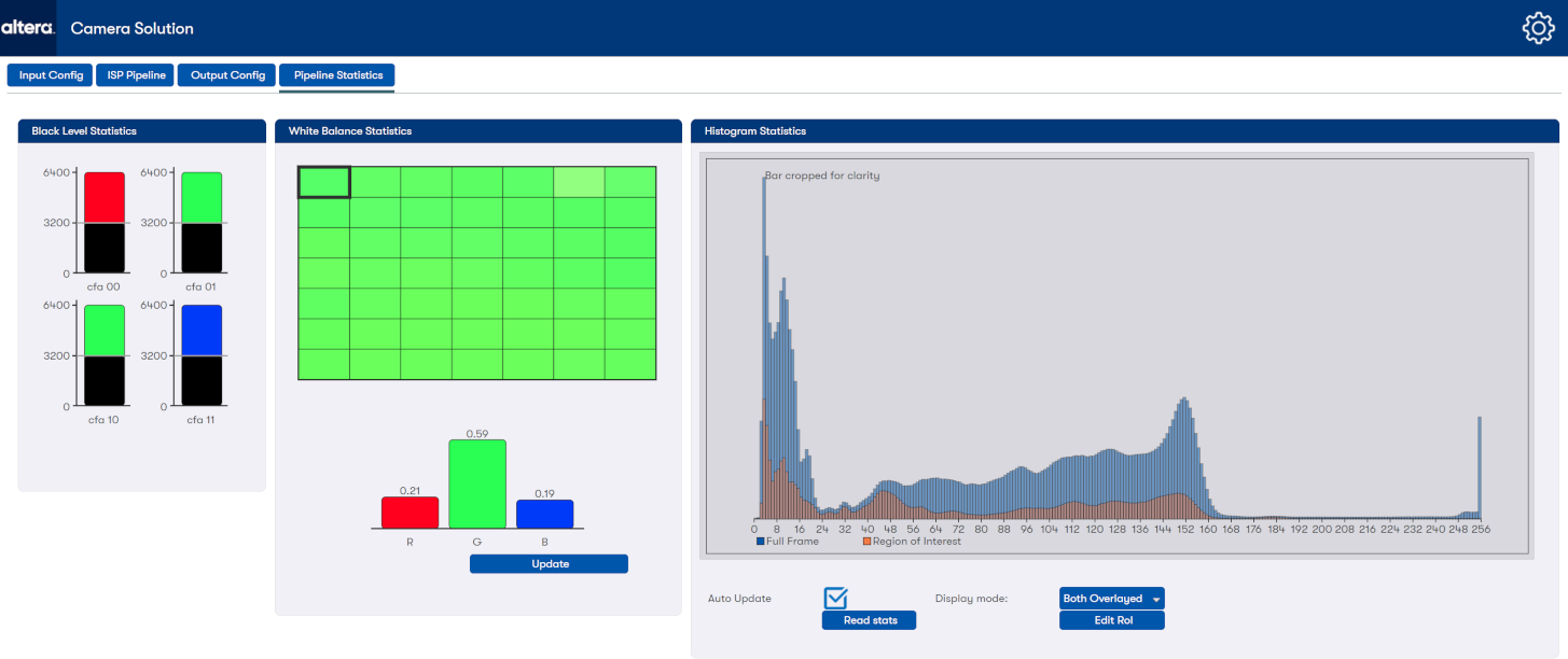 The Histogram Statistics displays the real-time output of the Histogram Statistics IP. It is intended to be used as a visual aid while adjusting exposure controls.