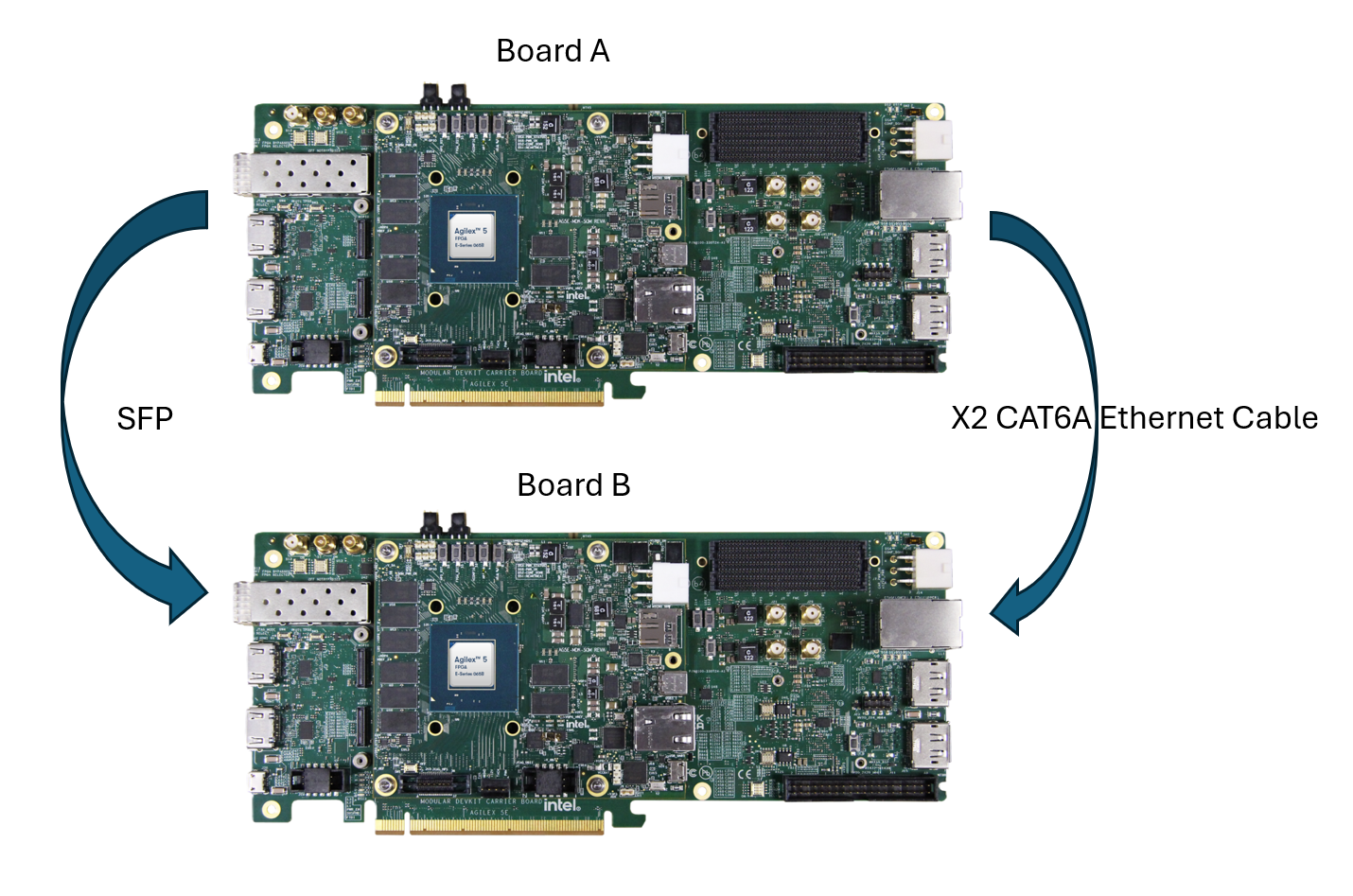 The Board-to-Board hardware setup connection details are captured in the image below.