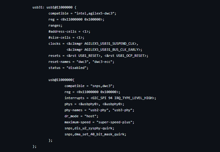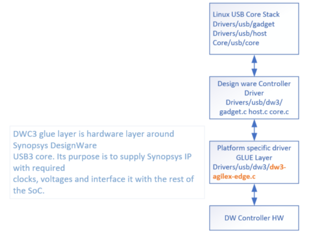 drivers/usb/dwc3/dwc3-of-simple.c is a USB glue driver for the dw3-agilex-edge.c component depicted in the diagram below. This glue driver is used to control dynamic mode switching.