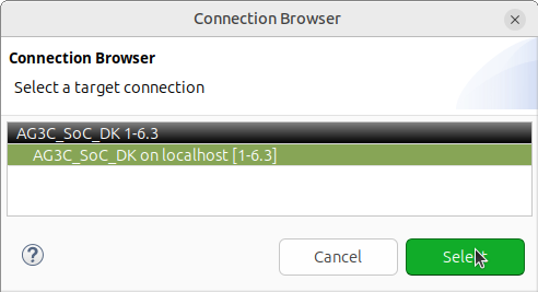 8. Click on the Connections Browse button, select your board connection, and click Select