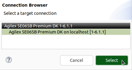 8. Click on the Connections Browse button, select your board connection, and click Select