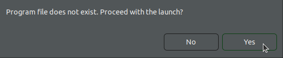 11. Click the Debug button on the bottom of the window. Eclipse will warn that the program file was not specified. Click Yes to proceed with the launch.