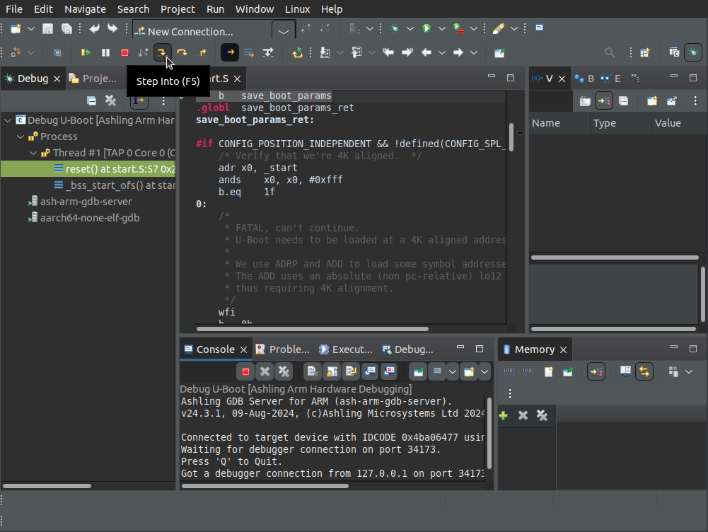 Debugging U-Boot with Ashling RiscFree Tutorial Example Design: Agilex™ 5 Premium Development Kit¶
