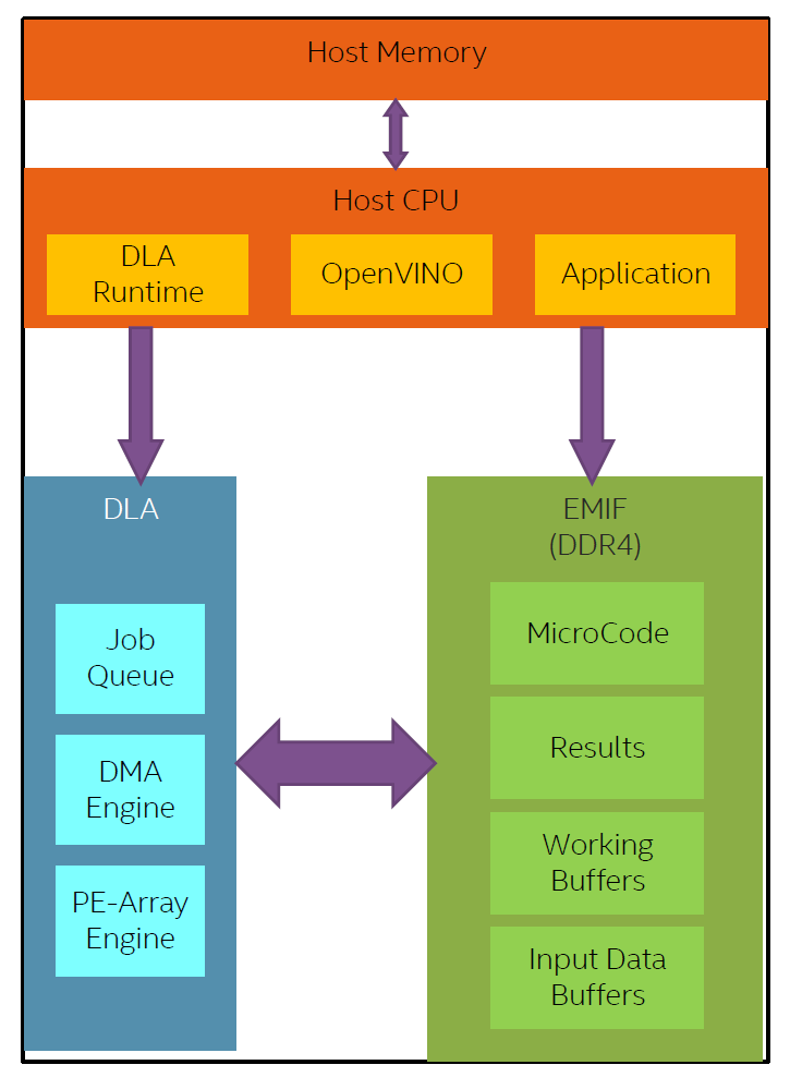 | PCIe-attach design example | Demonstrates how OpenVINO toolkit and the FPGA AI Suite support the look-aside deep learning acceleration model. This design example targets the Terasic* DE10-Agilex Development Board (DE10-Agilex-B2E2). |