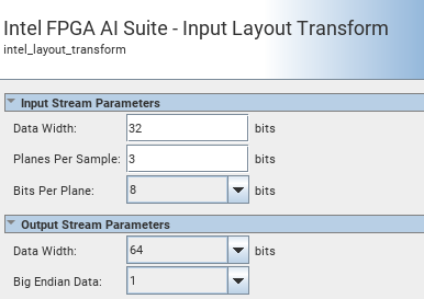 For Agilex 5 and Arria 10, the layout transform IP core does not support folding on the input buffer. For streaming, you must use models that have been compiled by the dla_compiler command with the --ffolding-option=0 command line option specified.