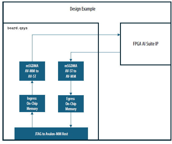The on-chip memory modules, mSGDMA engines, and other components are instantiated and interconnected within the board.qsys Platform Designer system. This comprehensive system design is then instantiated as an IP block within the top.sv file, ensuring seamless integration and efficient operation of the entire design.