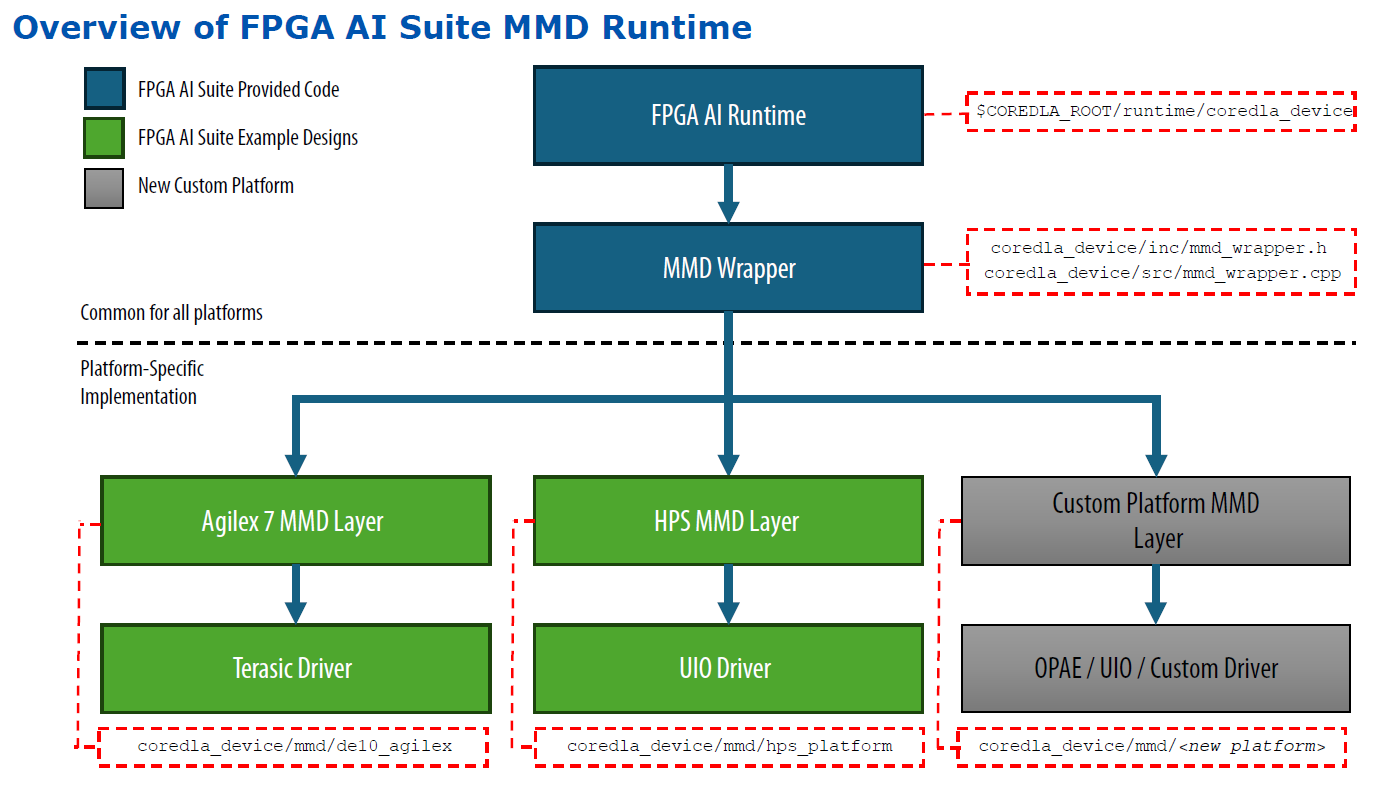 | SoC design example | Demonstrates how OpenVINO toolkit and the FPGA AI Suite support the CPU-offload deep-learning acceleration model in an embedded system. The design example targets the following development boards: * Agilex 7 FPGA I-Series Transceiver-SoC Development Kit (DK-SIAGI027FC) * Arria® 10 SX SoC FPGA Development Kit (DK-SOC-10AS066S) |