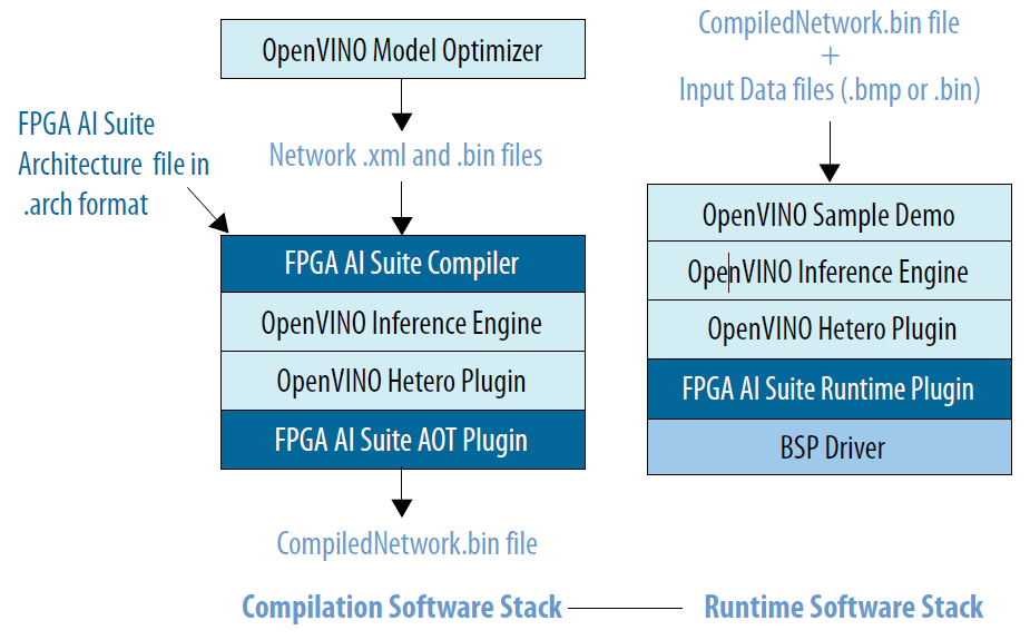 | FPGA AI Suite Handbook Get up and running with the FPGA AI Suite by learning how to initialize your compiler environment and reviewing the various design examples and tutorials provided with the FPGA AI Suite Describes the use modes of the graph compiler ( dla_compiler). It also provides details about the compiler command options and the format of compilation inputs and outputs. |