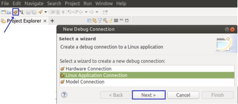a) Create a New Debug Connection to a Linux Application Connection. Press Next.