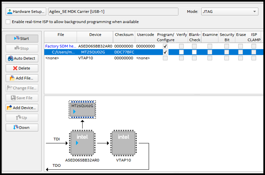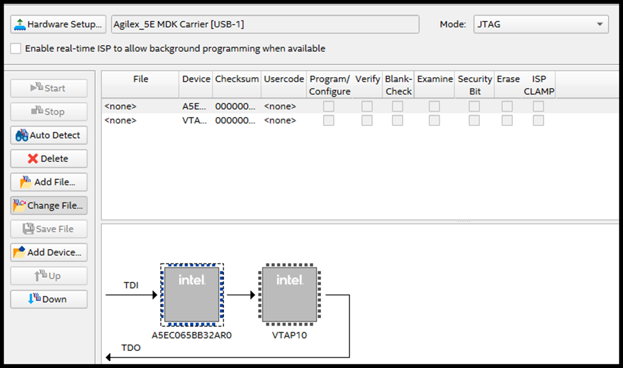 Select the Agilex™ device in the JTAG Device dropdown menu.