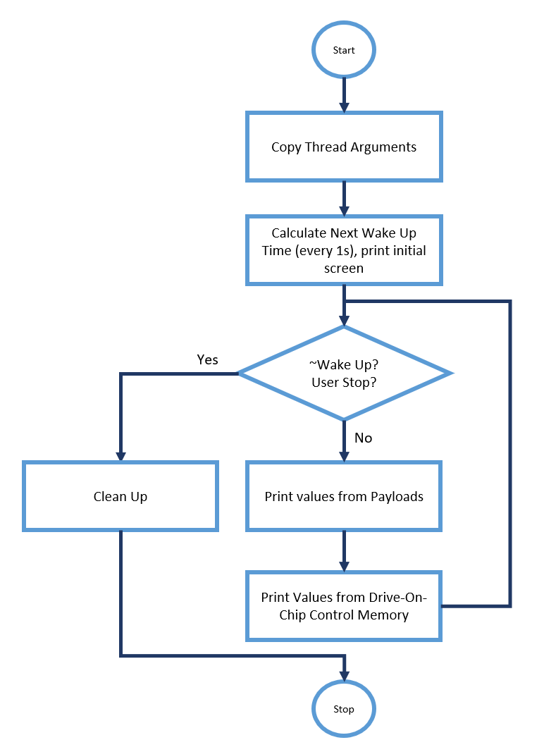 This thread implements the safety function in the HPS channel. The program allocates the thread and the interrupt to an isolated core 2. It sets the interval timer to run at 1ms (the safety response time, SRT).