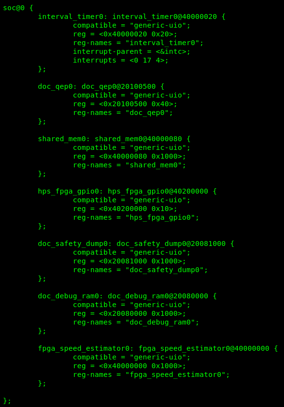 All components are listed in the .dtsi as compatible generic_uio, which is a way