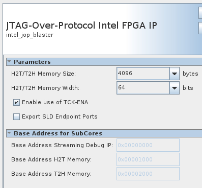 - JTAG-Over Protocol (JOP) Component: Platform Designer component which enables access to debug information through an Avalon®-MM slave bus