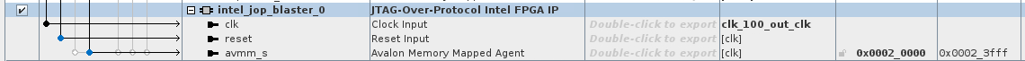 5. Connect the reset and clock to JOP component, also connect it's slave bus to the HPS LW bridge, and map it at offset 0x0001_4000: