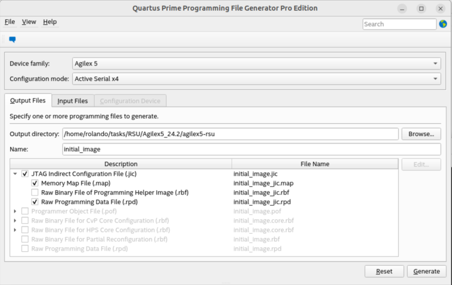 - Generate the new initial_image.jic using the modified initial_image.pfg file.