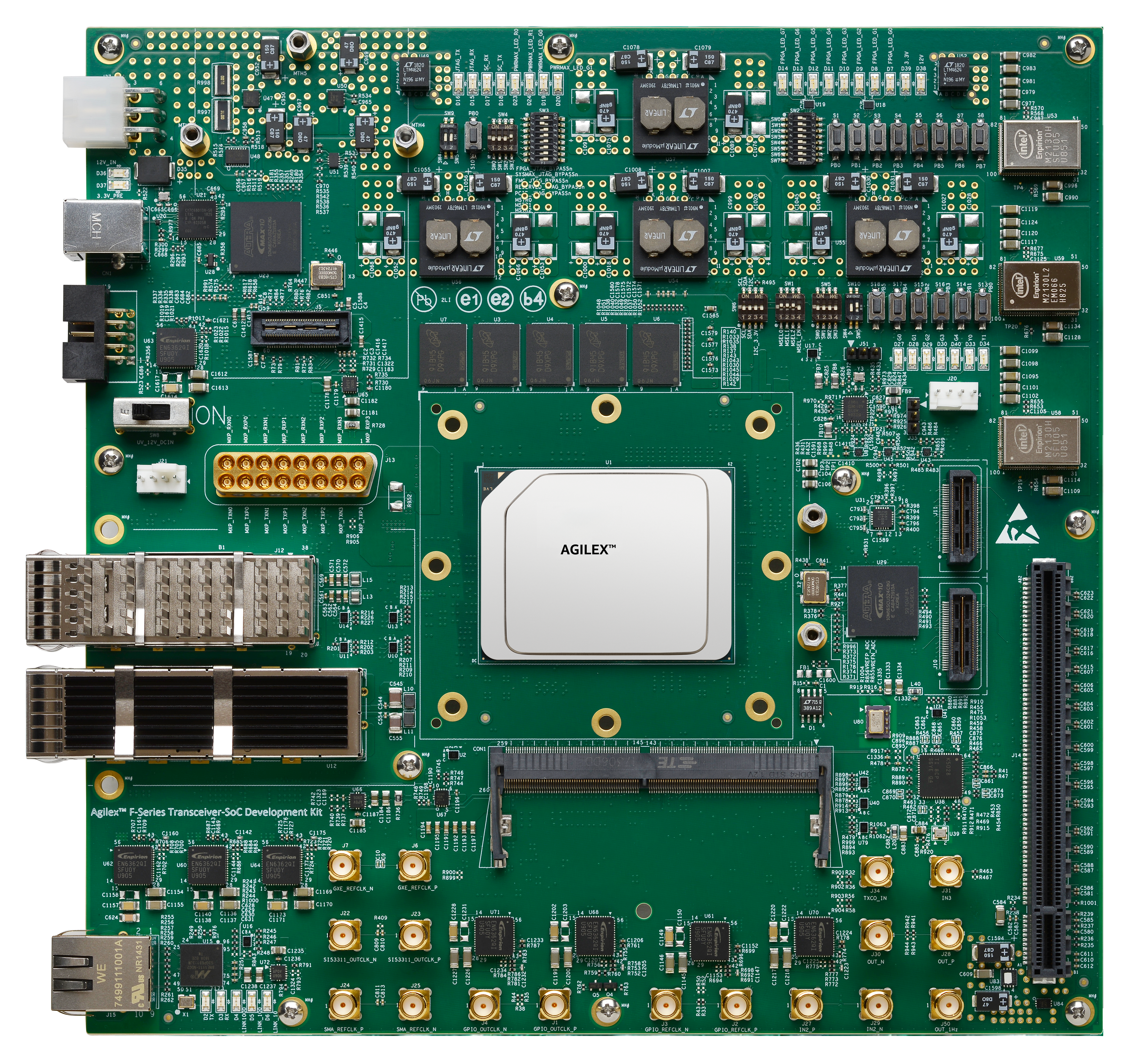 - Agilex™ 7 FPGA F-Series Transceiver-SoC Development Kit (P-Tile and E-Tile), ordering code DK-SI-AGF014EB. Refer to the board documentation for more information about the development kit.