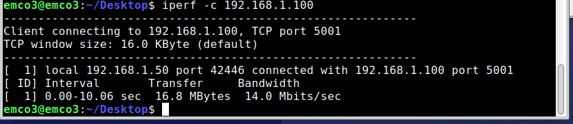 The host PC (192.168.1.50) can start the IPerf benchmark as an IPerf client.