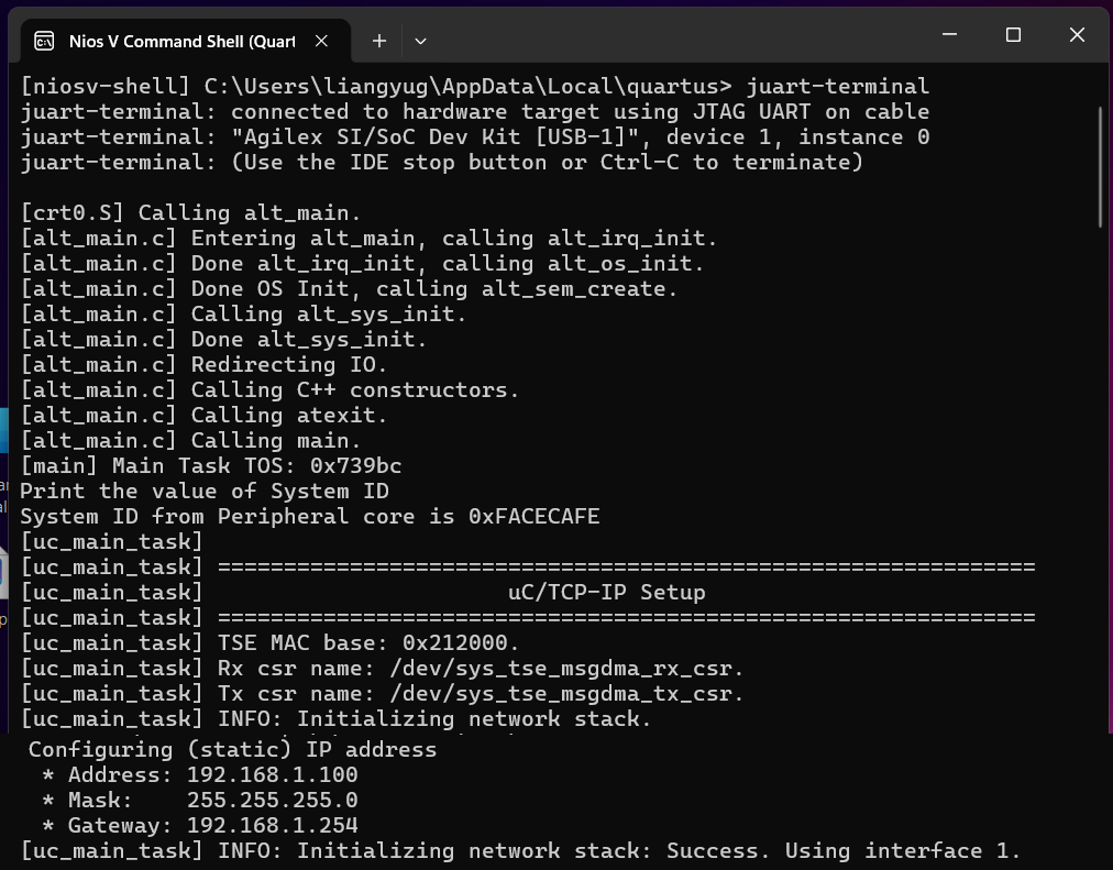 niosv-app --bsp-dir=sw/bsp --app-dir=sw/app --incs=sw/app,sw/app/uC-IPerf --srcs=sw/app/app_iperf.c,sw/app/main.c,sw/app/uC-IPerf/OS/uCOS-II/iperf_os.c,sw/app/uC-IPerf/Reporter/Terminal/iperf_rep.c,sw/app/uC-IPerf/Source/iperf-c.c,sw/app/uC-IPerf/Source/iperf-s.c,sw/app/uC-IPerf/Source/iperf.c,sw/app/uc_tcp_ip_init.c