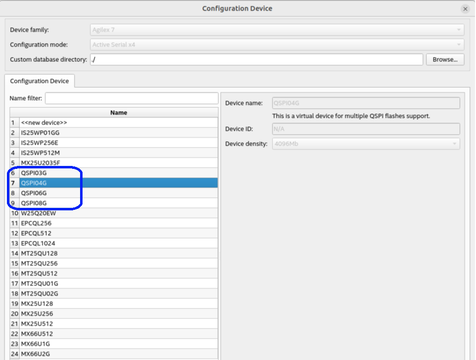 This page is an extension of the Agilex 7 SoC HPS Remote System Update Example and will show you how to build RSU images with multi QSPI support. This feature allows you to extend the flash space available to store the RSU applications so the size of these could be increased. This feature allows you to support up to 4 QSPI flash devices of the same model (i.e. same size).