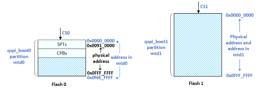 - The starting location of any component and partition in the QSPI flash devices should be aligned to the erase granularity defined in the devices.