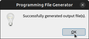 11. At this stage you can also click the Start button, for the Programmer to write the file to flash. A progress bar will be shown: