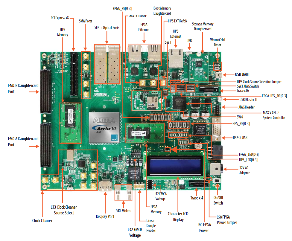 - Arria® 10 SX SoC Development Kit, ordering code DK-SOC-10AS066S-E.
