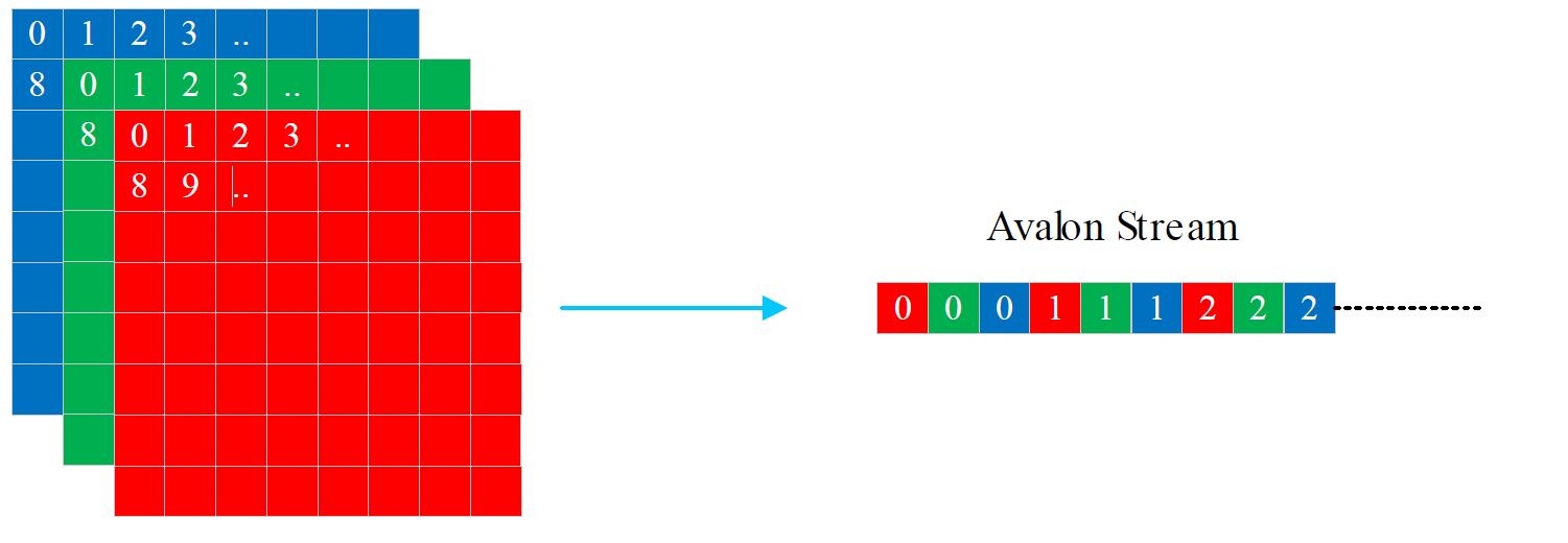 The image_streaming_app application loads images from the SD card, programs the layout transform IP, and then transfers the buffers via a streaming mSGDMA interface to the device. The buffers are sent at regular intervals at a frequency set by one of the command line options. Buffers are continually sent until the program is stopped with Ctrl+C.