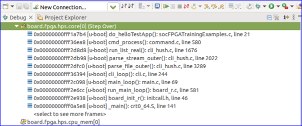 simics> (psel).debug dbg0 (the arm-cortex-a55 system.board.fpga.soc_inst.hps_subsys.agilex_hps.core[0]) Now debugging the arm-cortex-a55 system.board.fpga.soc_inst.hps_subsys.agilex_hps.core[0] do_helloTestApp(cmdtp=(struct cmd_tbl *) 0xfffc5788, flag=0, argc=1, argv=(char * const *) 0xffb09520) at /home/tasks/gsrd/agilex5/updateUbootApp/agilex5_gsrd/gsrd-socfpga/agilex5_devkit-gsrd-rootfs/tmp/work/agilex5-poky-linux/u-boot-socfpga/1_v2022.10+gitAUTOINC+59fa161039-r0/git/cmd/socFPGATrainingExamples.c:19 19 volatile unsigned char exitVar = 0;