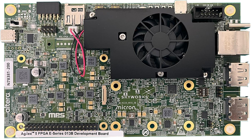 - Altera® Agilex™ 5 FPGA E-Series 013B Development Kit, ordering code DK-A5E013BM16AEA. Refer to board documentation for more information about the development kit.