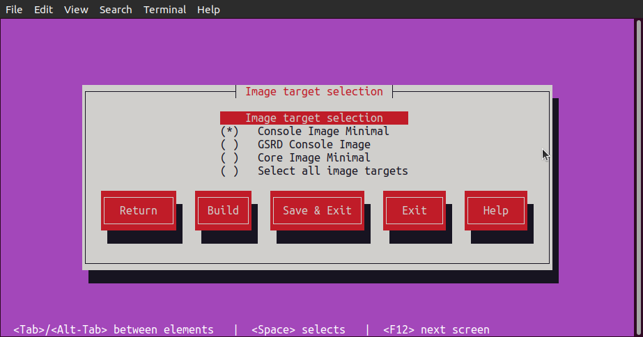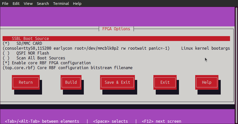 5. You will be presented with a Kconfig text menu, similar to the ones from Linux Kernel & U-Boot: