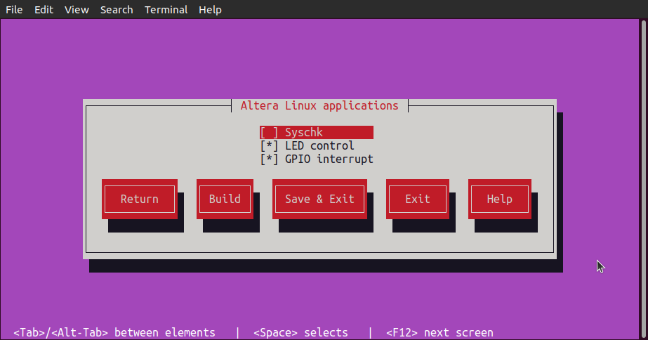 8. Go to Altera Linux Applications screen and select the desired applications: