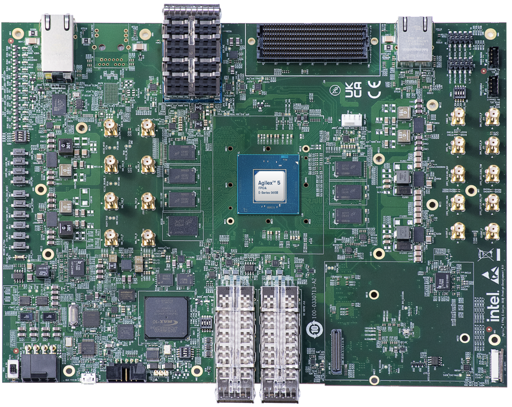 - Agilex™ 5 FPGA E-Series 065B Premium Development Kit, ordering code DK- A5E065BB32AES1. Refer to the board documentation for more information about the development kit.