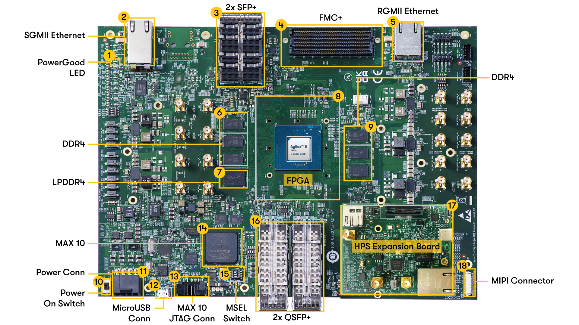 - Agilex™ 5 FPGA and SoC E-Series Premium Development Kit (ES) (DK-A5E065BB32AES1) × 2.