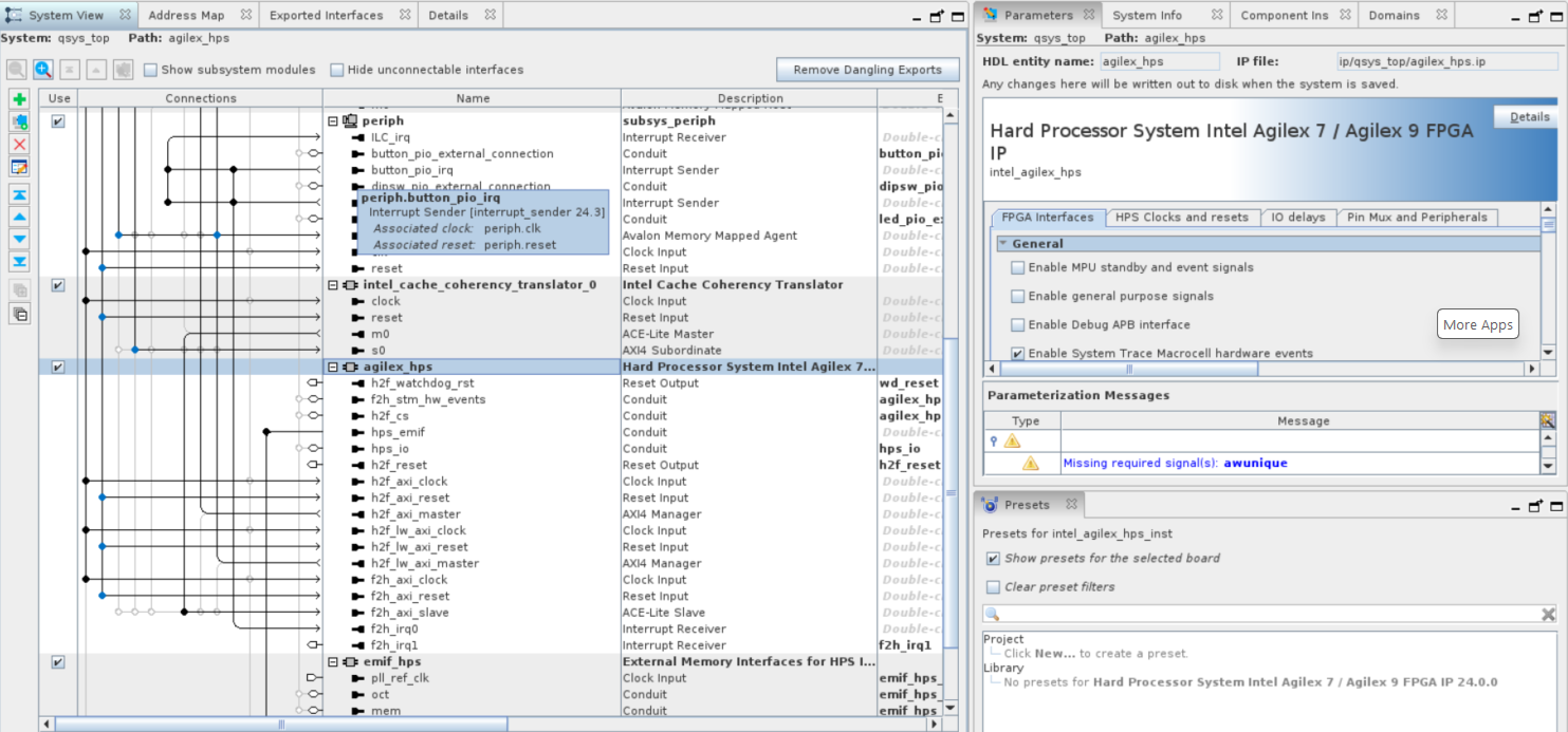 - The Bridges chapter of the Altera® Agilex™ 7 Hard Processor System Technical Reference Manual contains information and examples bridge settings for AXI Side Band Signals.