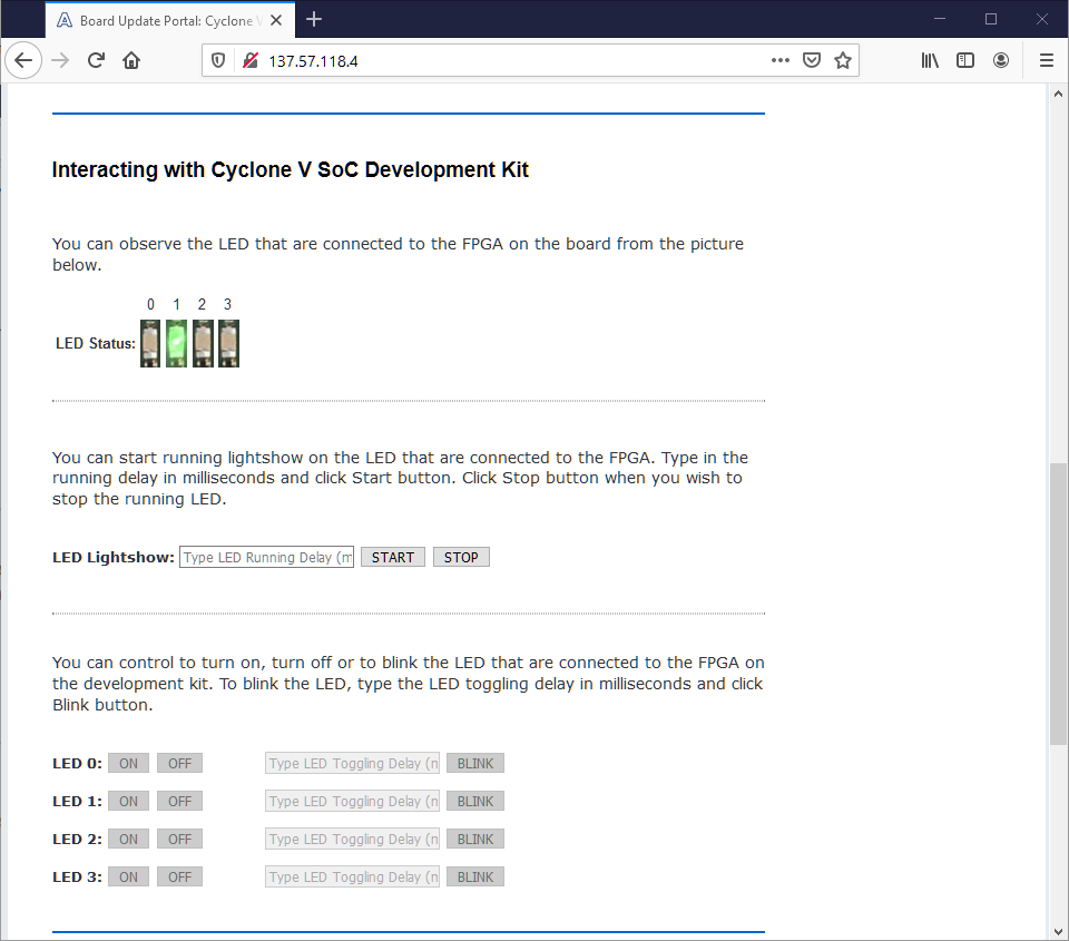 The memory map of soft IP peripherals, as viewed by the microprocessor unit (MPU) of the HPS, starts at HPS-to-FPGA base address of 0xC000_0000. The following table lists the offset from 0xC000_0000 of each peripheral in the FPGA portion of the SoC.