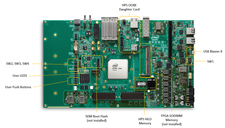 - Stratix 10 SoC Development Kit, ordering code DK-SOC-1SSX-H-D